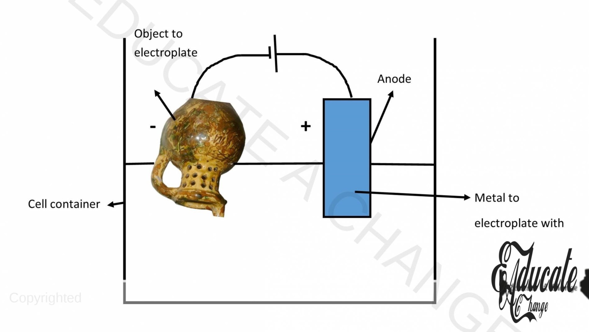 When we want to cover one substance with a coat of another element, we attach the object as an electrode at the cathode, and the metal is placed in the solution where it has more ease to charge. Hence, the metal ions move to the cathode and get deposited at the object, creating a thin but firm coating. This is done to coat items with gold.