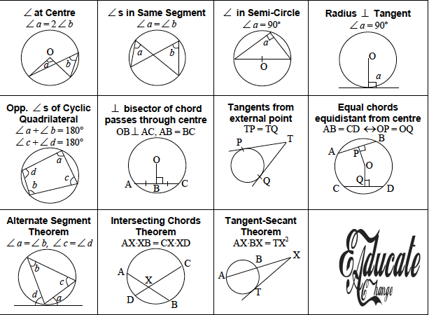 - Two tangents originating form the same point make the same angle on the circle