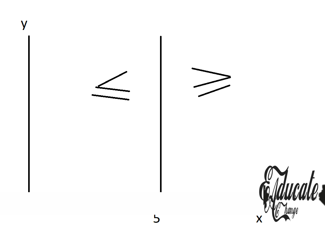 - Will always be denoted with y is either greater than or lesser than (or greater than equal to or lesser than equal to) something