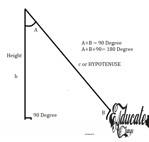 - The base and height of the right angled triangle is RELATIVE to the angle you are considering