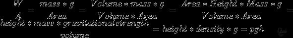 - In liquids, the force being applied is weight and hence pressure = weight/ area.