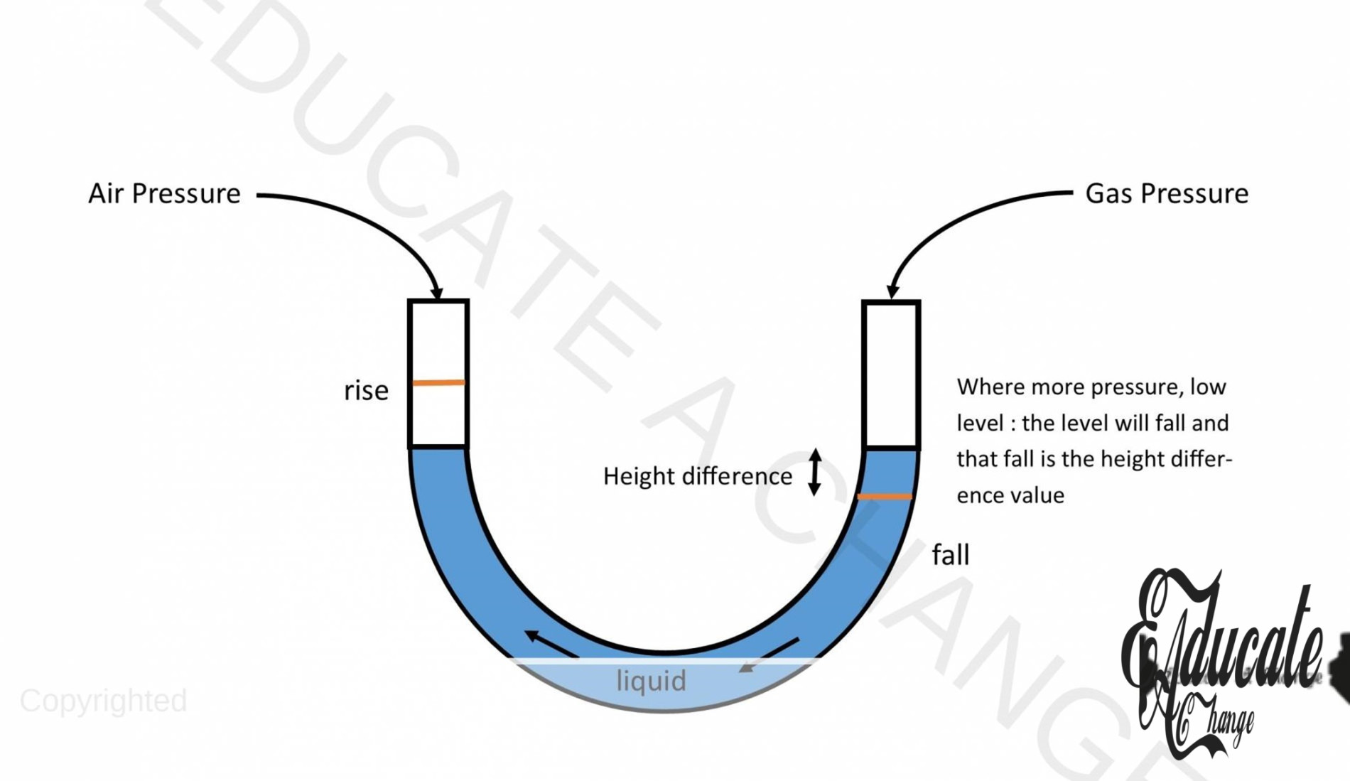 - If liquid in column of gas pressure rises, then its pressure is lower than the atmospheric pressure and then we would use: Atmospheric pressure – difference in liquid height.