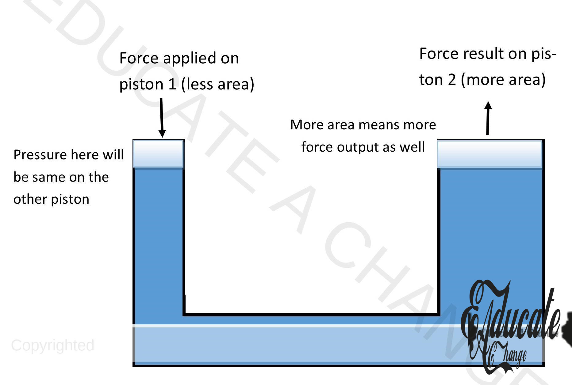- Hence, if we increase the area of the other piston, the force on that piston will also increase.