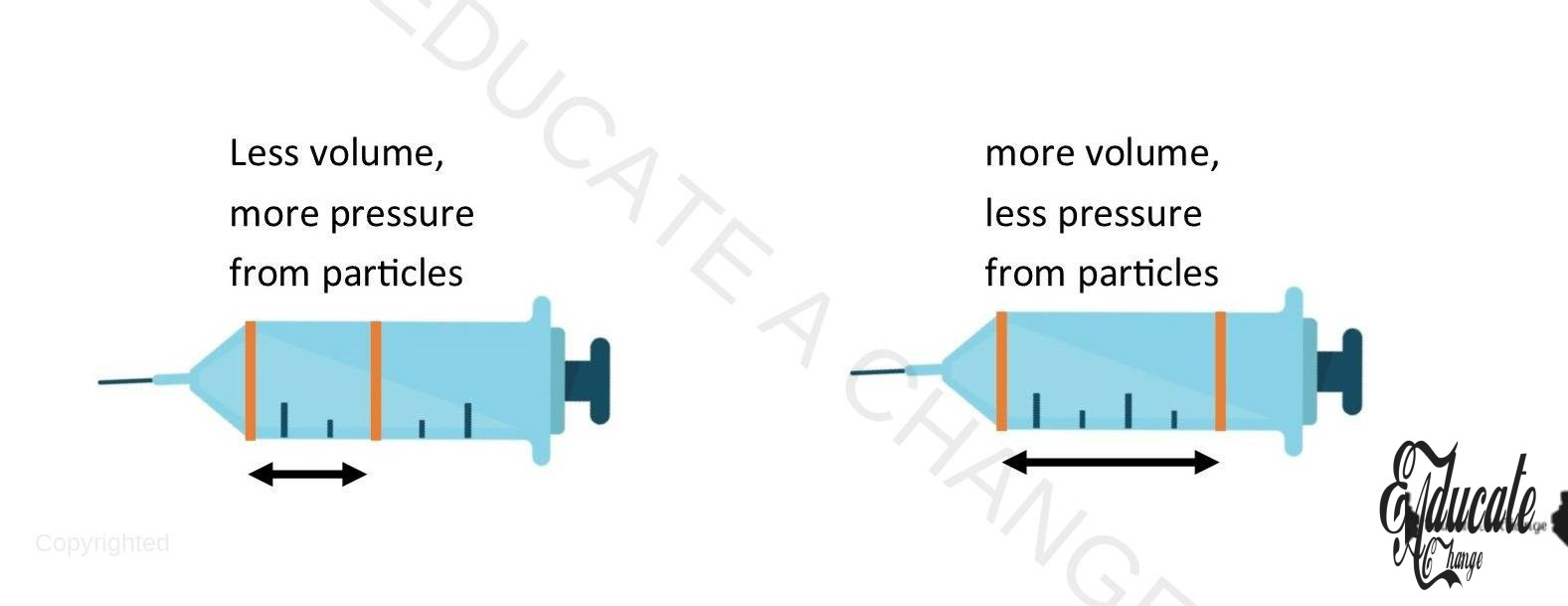 - When we place the syringe inside a medicine and pull the handle, the air particles inside the syringe get more volume and hence, their pressure decreases (discussed in Boyle’s Law). This causes the medicine to be drawn in since it places a higher pressure as compared to the particles inside the syringe.