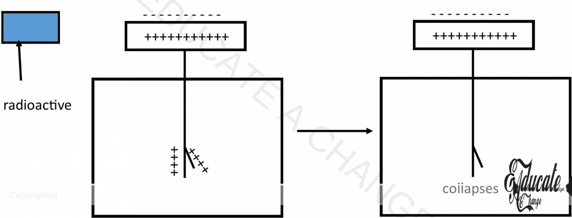 - When radiations are emitted by an object, they ionize the air around the electroscope
