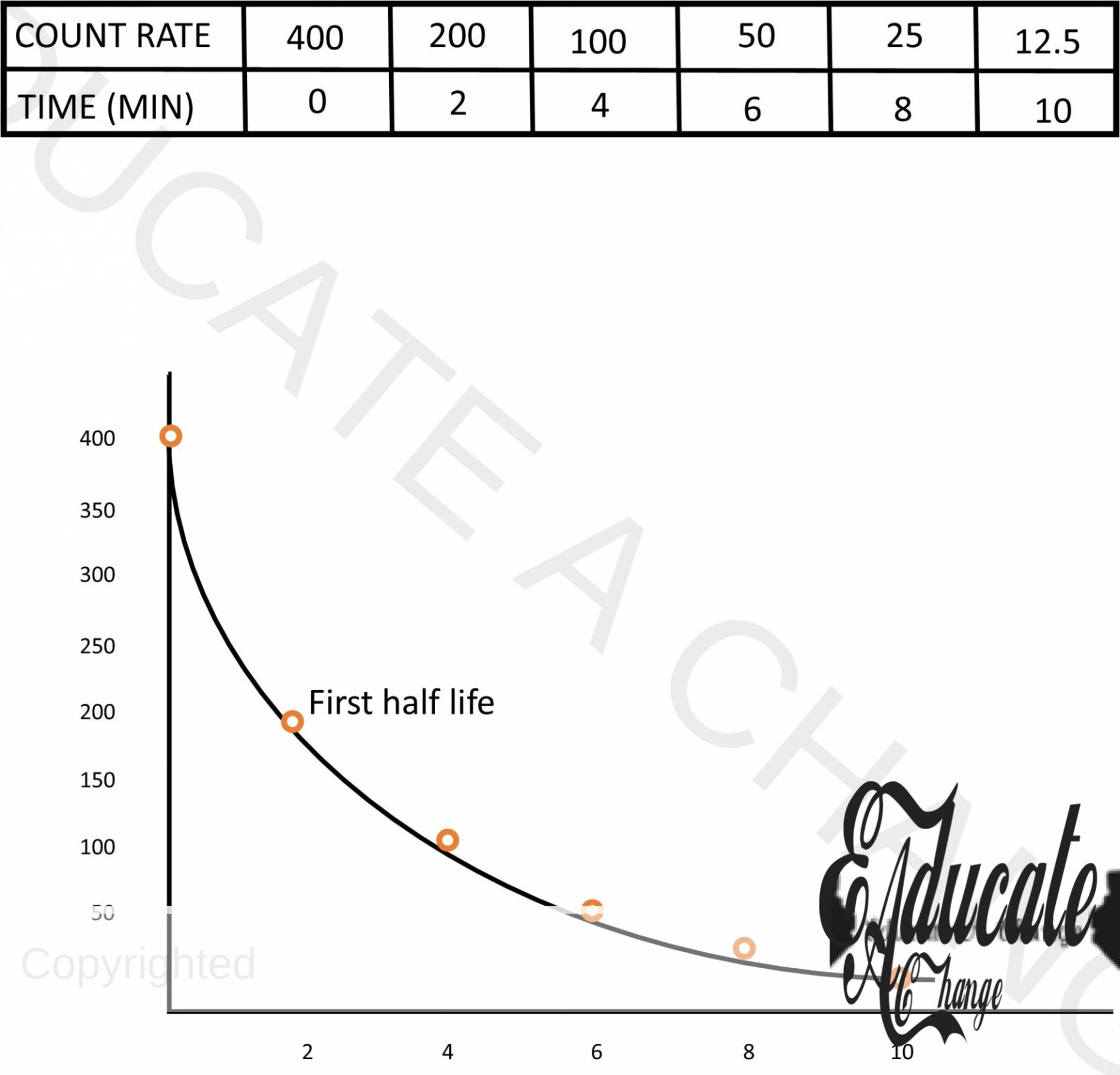 The count rate in the absence of any radioactive element in the GM Counter is called background count. The source of background count are outer space and cosmic rays. Also, they can be caused by underground radioactive rocks. Remaining amount = original amount x (1/2)t — number of half lives