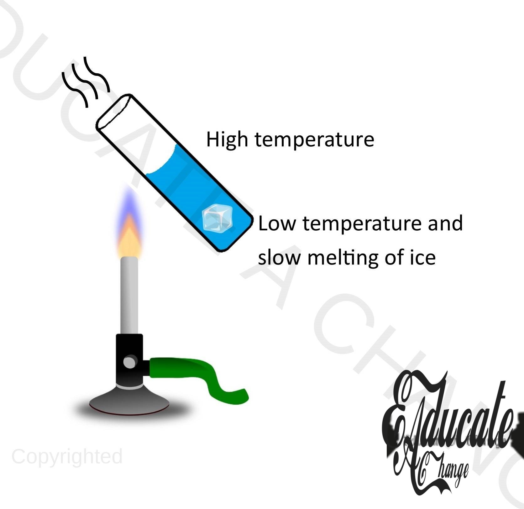 Objective: To observe conduction in liquids. Apparatus: Test tubes, metal covered with ice, burner, water. Procedure: