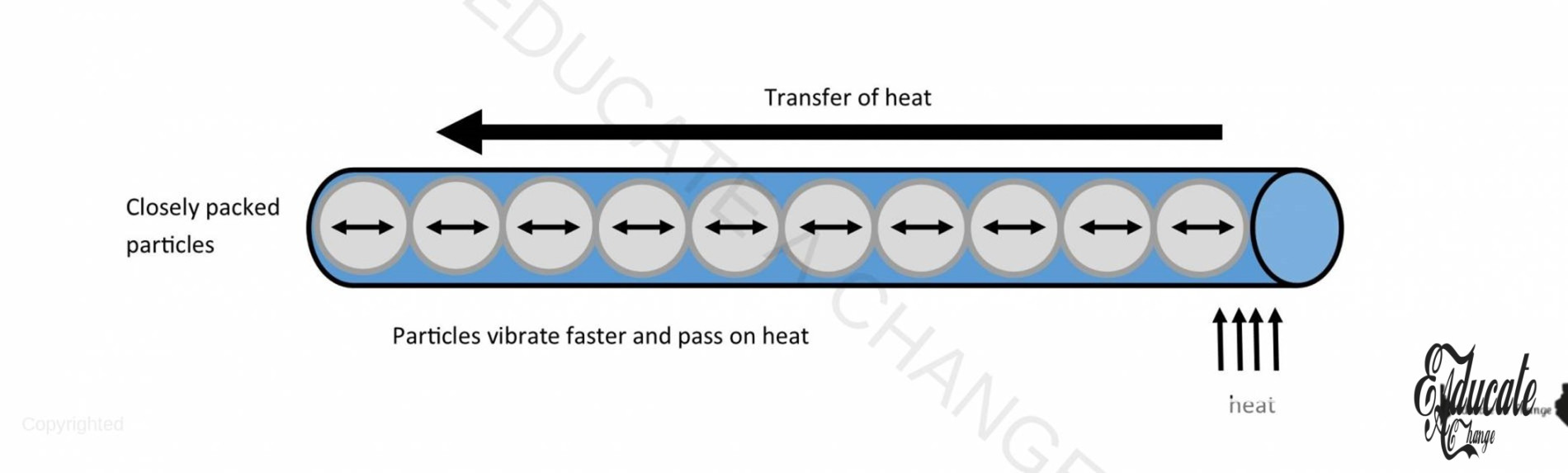- In metallic solids, there are free moving electrons which transfer the heat from one end to the other end.
