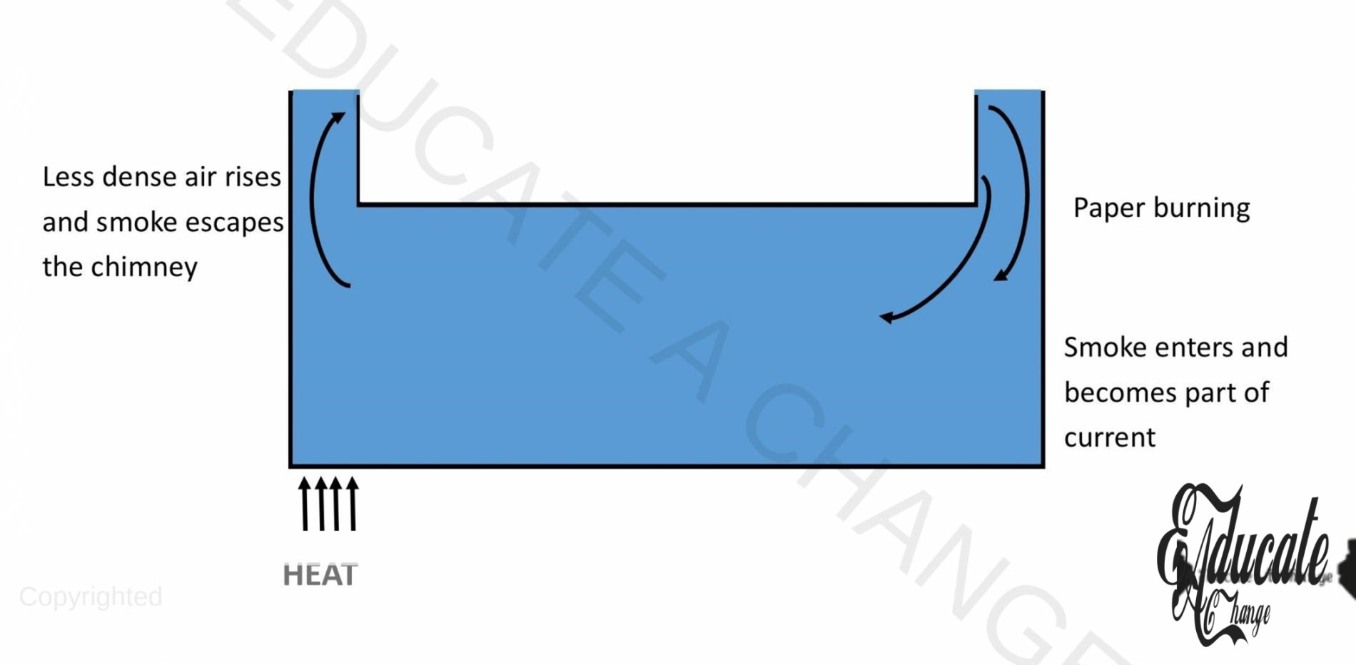 - The smoke of burning paper enters the box from one chimney and it finds it’s passage out of the other chimney as candle heats up surrounding air and it becomes less dense and rises up.