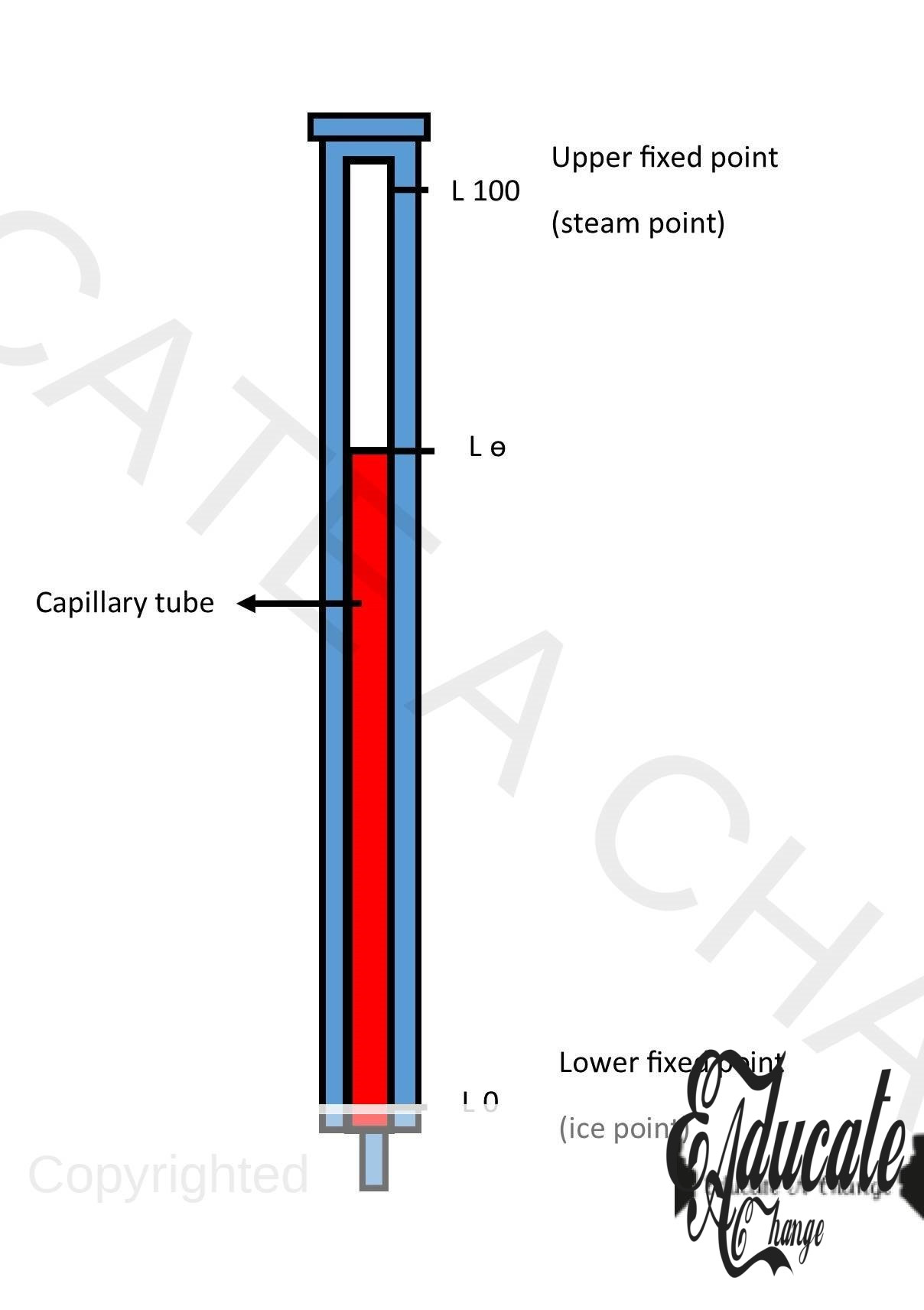 - We calibrate the thermometer into 100 equal segments using upper fixed point (steam point) which is the temperature of boiling water and lower fixed point (ice point) which is the temperature of melting ice.