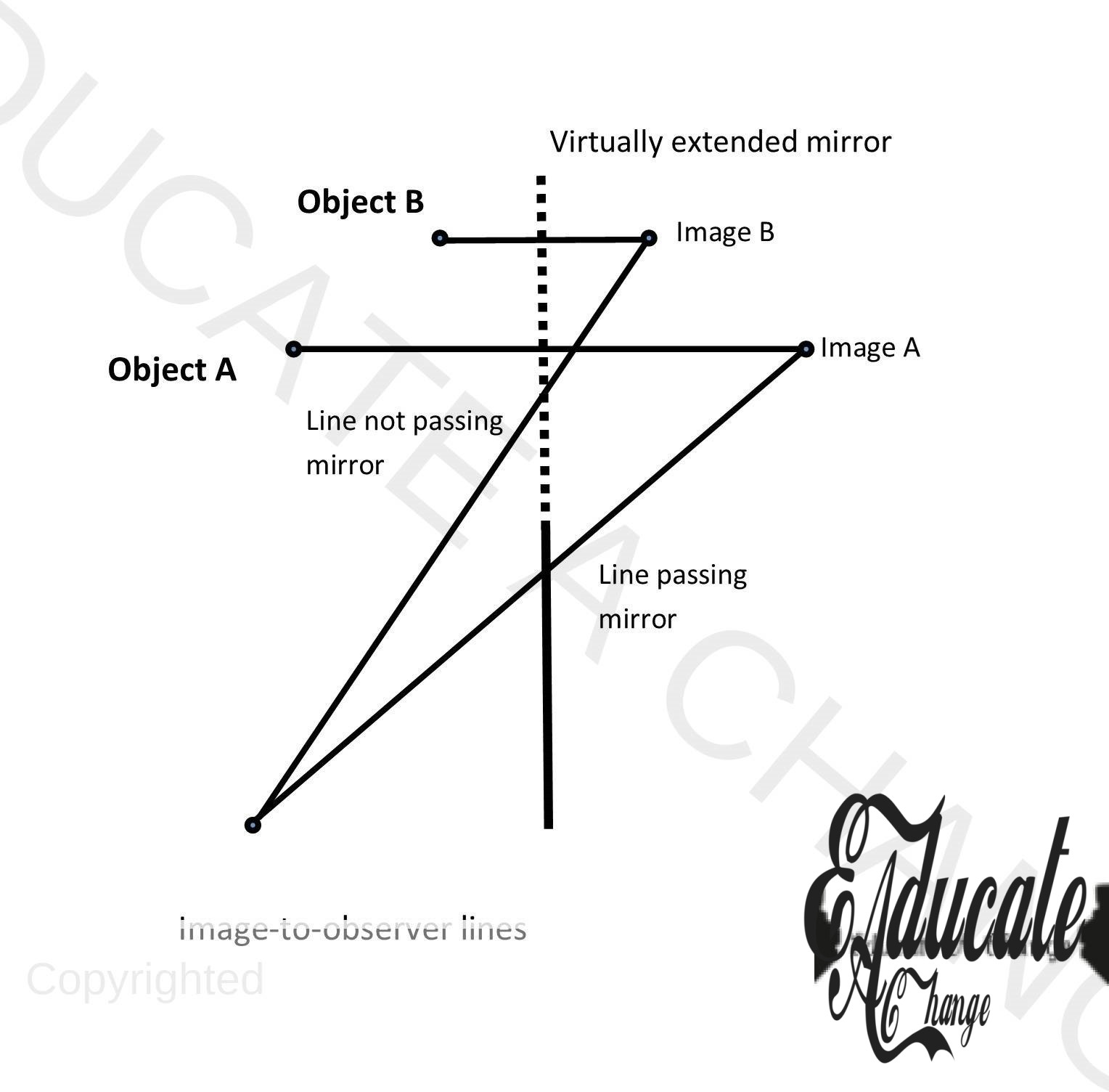 - Draw the image-to-observer line. If the line crosses the mirror, then our observer can see the object in the mirror, otherwise not.