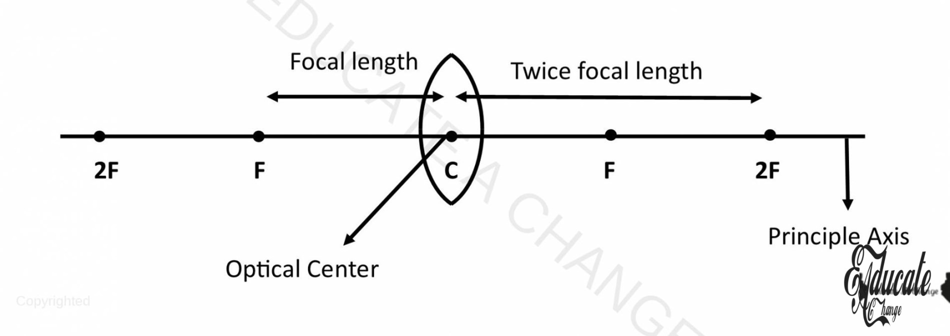 - A point on the principle axis on both sides of the lens (which has equal distance from center, c).